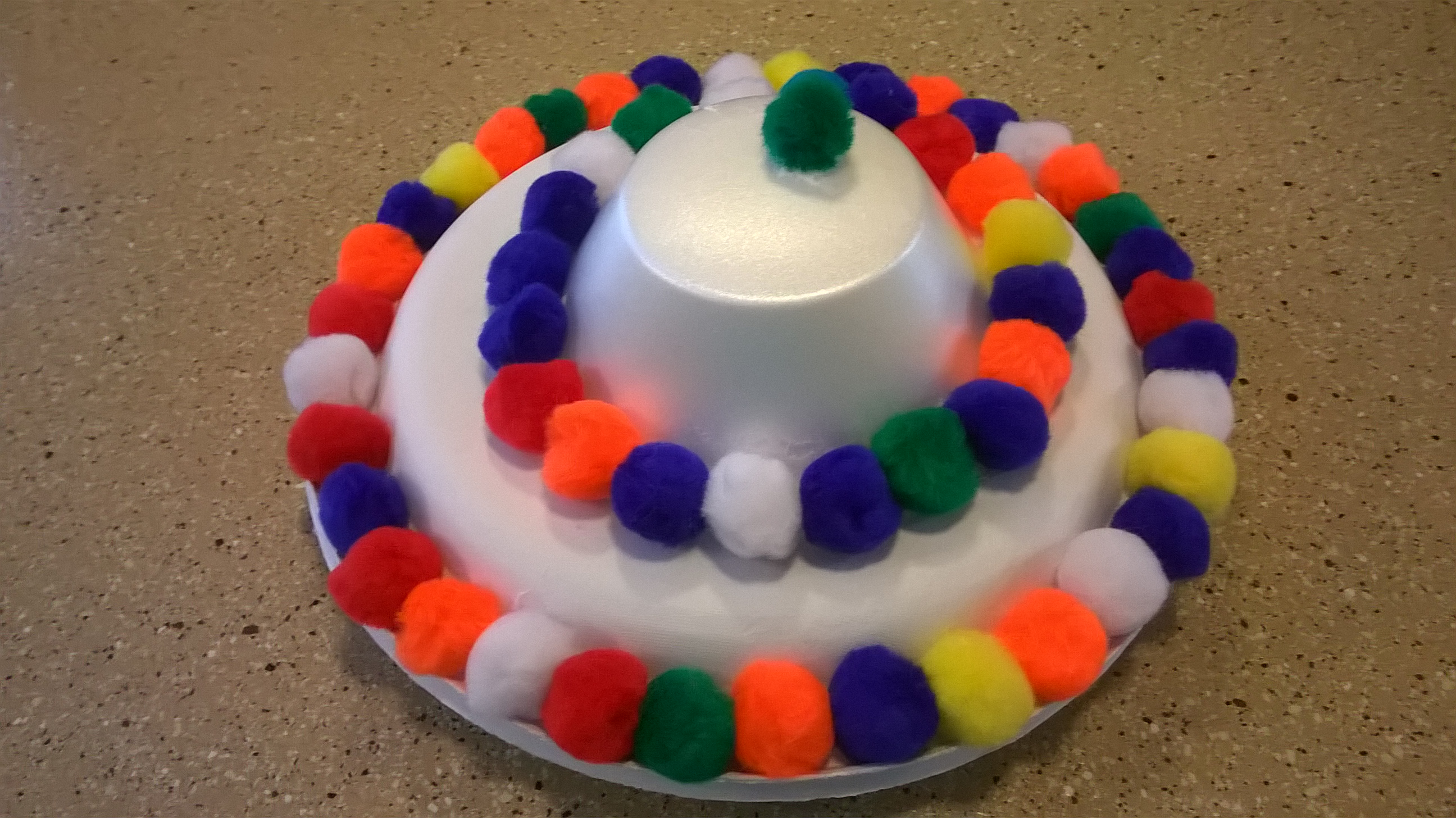 After making our robots/aliens we still had some materials so we decided to make a spaceship out of paper plates.
