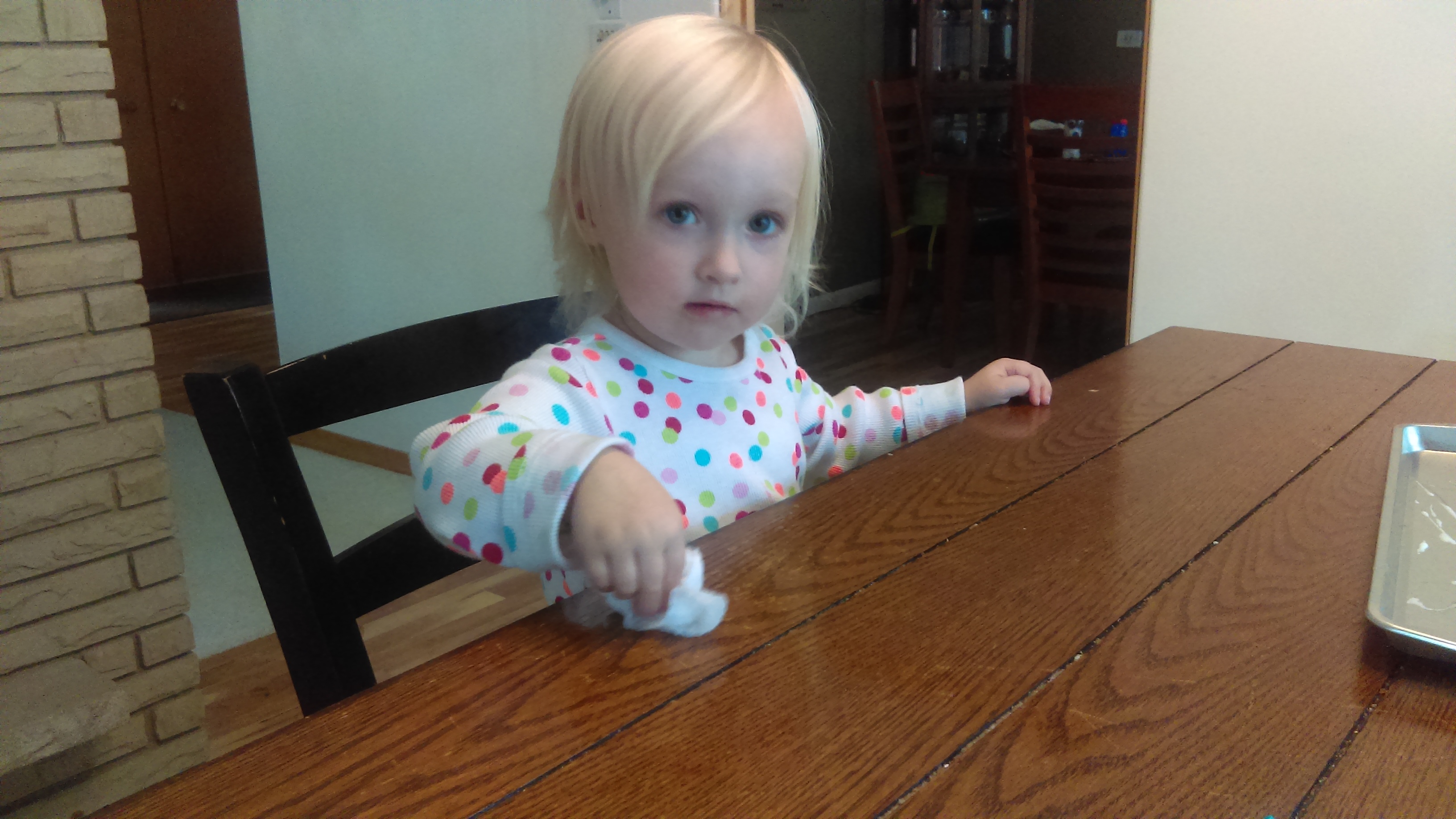 Then comes the clean up…..as you can see Babs is thrilled. 😉